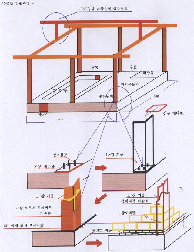 그러나 문의자 호검님께서는 별도의 주말 휴식공간으로 활용할 목적이기 때문에 H-빔까지는 적용할 필요가 없으나 코너의 안정성과