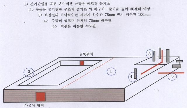 수도의 경우도 내부의 주방위치와 화장실위치에 배관설비가 완료되어야 수도설비가 완료되었다고 할 수 있으며...