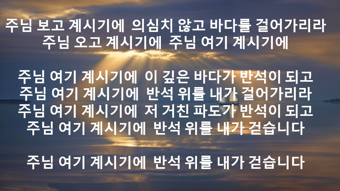 주님 보고 계시기에 의심치 않고 바다를 걸어가리라