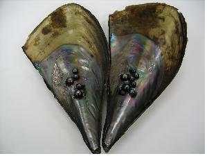 흑진주 黑眞珠 블랙 펄 Black Pearl : 흑엽조개(Black Lip)에서 나오는 진주(해수) 5월9일탄생석( 조용한 강인함 ) 흑진주는 불영 미크로네시아Micronesia , 타히티 (Tahiti프랑스령 폴리네시아 섬) 등 열대지방 인도-태평양에서 발견되는 흑엽조개종에서만 생산될 정도로 희소가치가 높다 타히션 퍼얼<타히티안 진주Tahitian pearl>이라고도 하는 흑진주는 흑엽조개<black lipped pear oyster, Pinctada margaritifera>,타히티안 흑진주 조개<Tahitian black pearl oyster> 라고도 한다 흑진주들은 다양한 체형(體形)들과, 회색.밝은 회색에서 거의 검정까지, 공작의 녹색(peacock green) 특히 비싸다), 가지의 짙은 보라색(aubergine eggplant) 짙은 갈색 을 포함하는 상색(上色, overtone tint)들을 포함하는 많은 색들이 나온다. 짙은 진주층(nacre)의 색은 조개의 먹이(plankton)에 들어있는 광물들과 주위의 환경에 의해서 결정된다. 많은 흑진주들이 색을 강화하거나 바꾸기 위하여 염색되거나 방사선조사(irradiated)된다 처리된 진주와 자연산(천연) 진주를 구별하기가 어렵다. 흑진주의 전설 흑진주의 모패(The Pearl Oyster)인 “테 우피 (Te Ufi)”는 무지개를 타고 땅에 내려온 평화와 생산의 신 “ORO”가 사람들에게 선물한 것이라고 한다 . 어떤 사람들은 모패가 생산하는 흑진주는 ORO 신이 보라보라 섬(Bora Bora)의 아름다운 공주에게 바치는 영원한 사랑의 상징이라고도 한다 모패 “Te Ufi”는 전문용어로 “Pinctada margaritifera핑타다 마가리프라”라고 하며 일반적으로 검은 입을 가지고 있는 조개로 알려져 있다. 19세기에는 다른 조개들과 마찬가지로 의복 단추로 많이 사용되었다. 그 영향으로 상업적으로 사용되는 조개는 프랑스 영 폴리네시아의 5개의 군도 중 두개인 환초섬 투아모투 <Tuamotu> 와 갬비어< 감비아 Gambier>에서 생산되게 되었다. 예전에는 하나의 천연 진주를 찾기 위해 약 만오천개의 조개를 열어봐야만 했었다. 그래서 지금과 같은 진주 양식 기술이 발견되기 전에 흑진주는 희귀성과 가치를 나타내는 진주로 세평을 받았고 이 평판은 흑진주의 가치를 높이게 되어 세계의 왕족,귀족들의 주얼리를 장식하는 데 쓰이게 된. 결과 흑진주는 “여왕의 진주, 진주의 여왕”으로 세상에 알려지게 되었다 가장 유명한 천연 흑진주는 “아주라 Azura” 였다. 이 진주는 러시안 크라운 주얼리 중 목걸이의 중앙 부분으로 사용되었다 현재 타히티안 흑진주는 그 명성과 다른 진주들과 같은 매력으로 인해 “이국적인 보석”으로 자리잡게 되었다