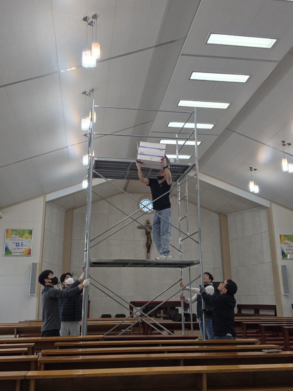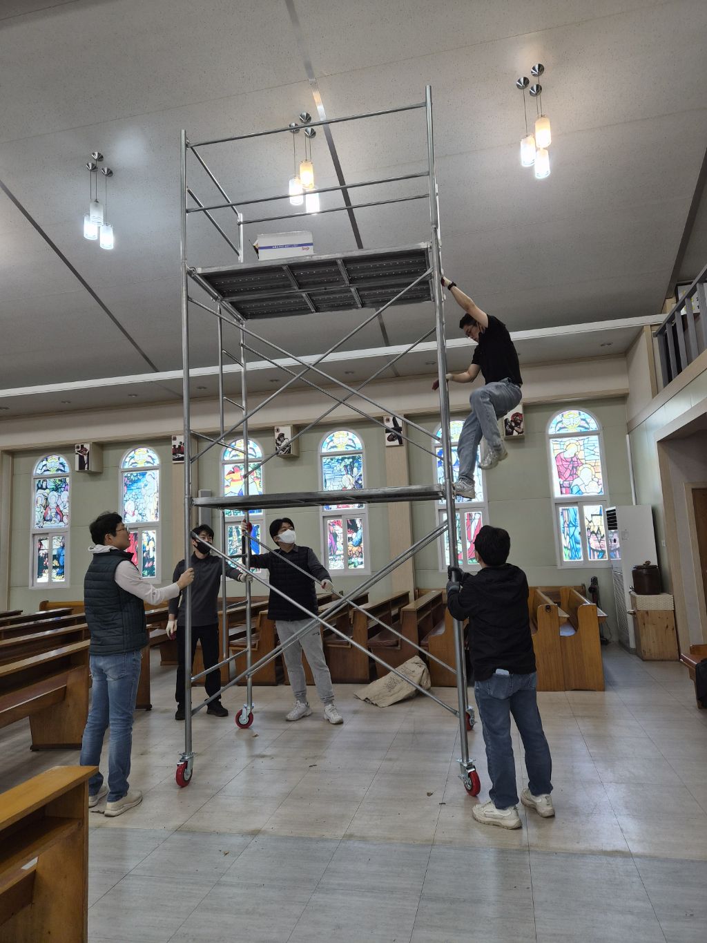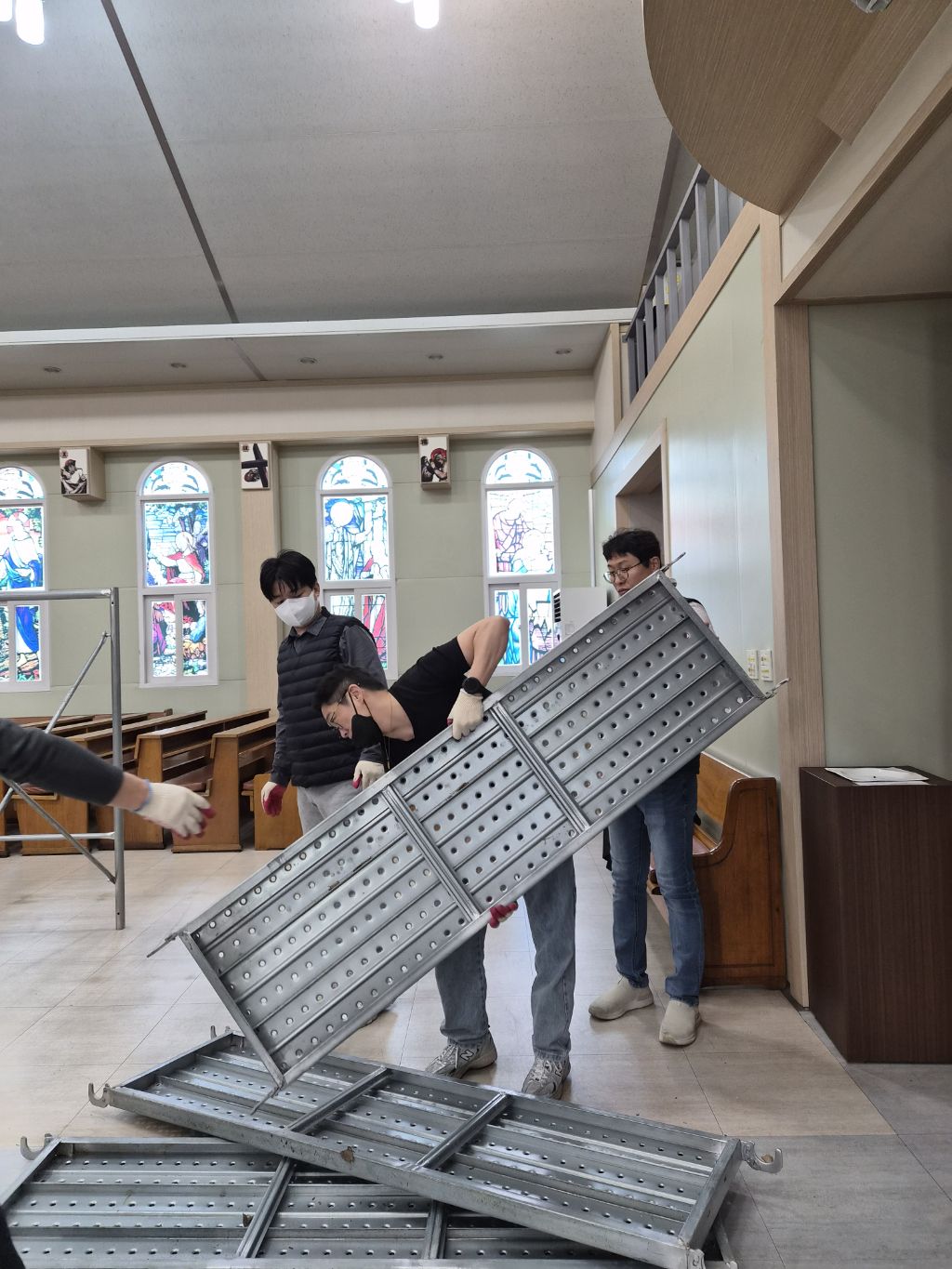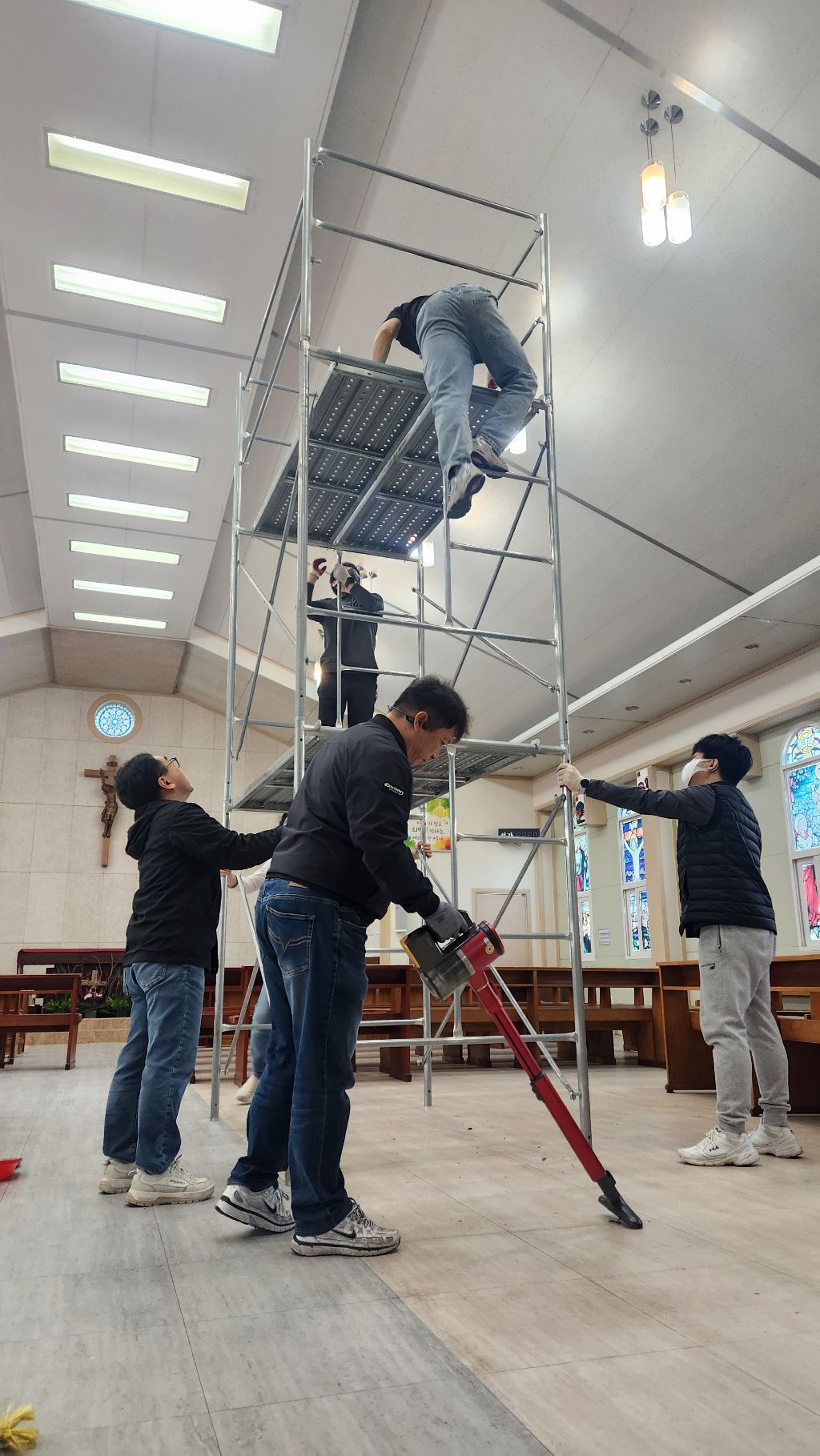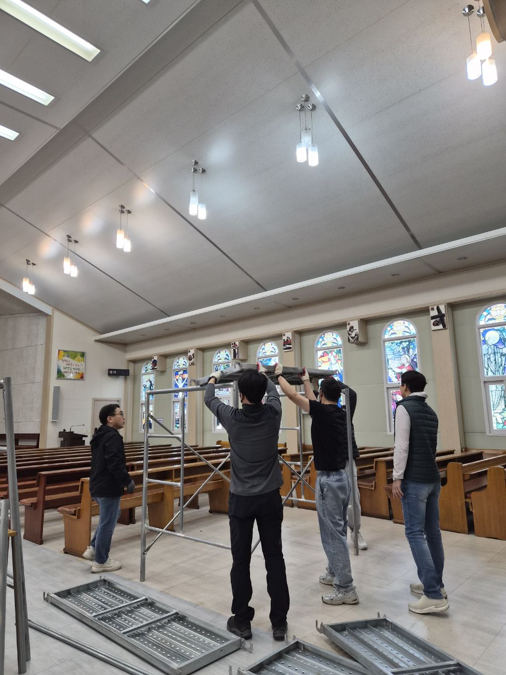 주님 부활을 일주일 앞둔 오늘 희망의 어머니 Cu.단원들이 성당 외부 대청소와 성당내부 전등 교체 작업을 실시하였습니다. 바쁜 일정속에서도 성당 청소를 위하여 참석해 주신 단원 여러분들과 특히 레지오에 함께 하시지는 않지만 협조해 주신 평협 임원 여러분과 자보회 자부님들께도 감사드립니다.