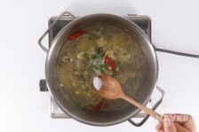 04. 실파를 넣고 다진 마늘, 청주, 소금, 후춧가루를 넣어 간합니다.