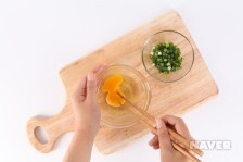02. 실파는 적당한 길이로 썰고 계란은 알 끈을 없앤 후 풀어 놓습니다.