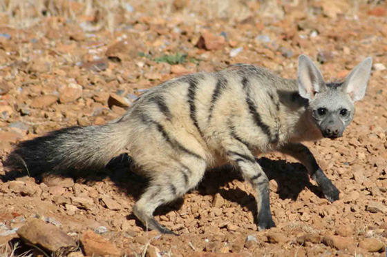 늘씬한 황회색 하이애나 처럼 보이는 아프리카 포유류지만,사실은 흰개미 같은 곤충을 주로