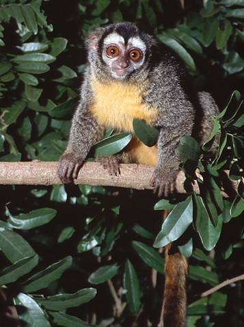 Also known as owl monkeys because of their large brown eyes, these are the only