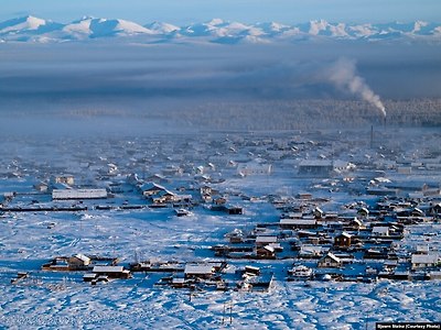 2. The village of Tomtor, one of the coldest inhabited places on Earth, seen from a nearby mountain.