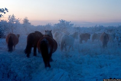 멀리 떨어진 러시아 예쿠치야(Якутия) 공화국의 두 도시 탐토르스키(Томторский)와 오이미콘(Оймякон)이 겨울철 기온이 영하 71℃까지 내려가, 지구상에서 가장 추운 거주 지역(最寒居住地域)의 명칭(名稱)을 위해 경쟁한다. 이지역은 명성의 또 다른 주장이 있다. 추위를 견딜 수있는 뛰어난 능력을 가진 희귀한 토종(土種), 때로는 단순히 예쿠트로 알려진 예쿠트 말의 고향이다. 이 사진들은 기온이 영하 55℃ 아래로 내려가는 그들의 겨울 서식지(冬季棲息地)에서 튼튼한 말을 보여준다.