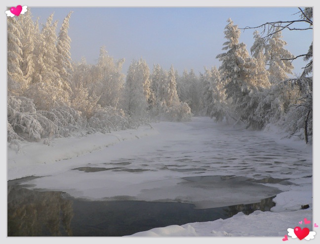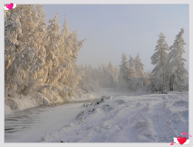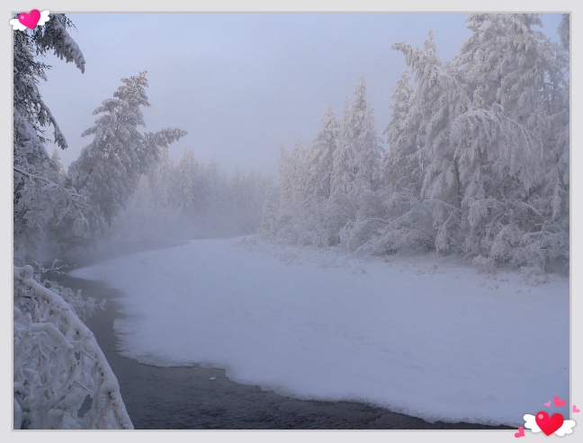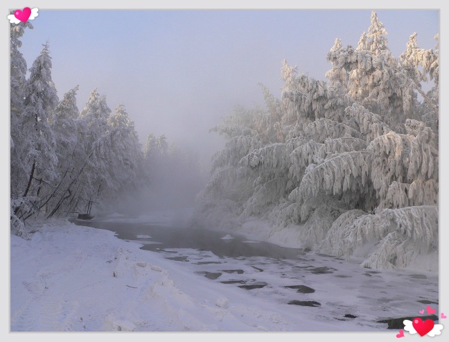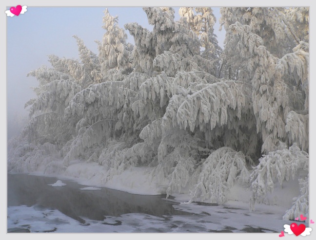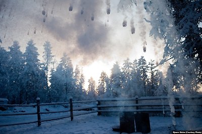 톰토르(Томтор)의 사진들. 온천(溫泉)이기 때문에 하천은 결코 얼지 않는다. 수증기(水蒸氣)는 계속 나오고, 주위의 모든 나무들이 곧바로 얼어버려 매우 기괴한 모습을 하고 있다.
