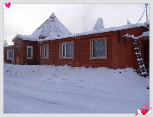 The small hotel where I've spent the night in Tomtor. Today the temperature is -50 deg. centigrades.