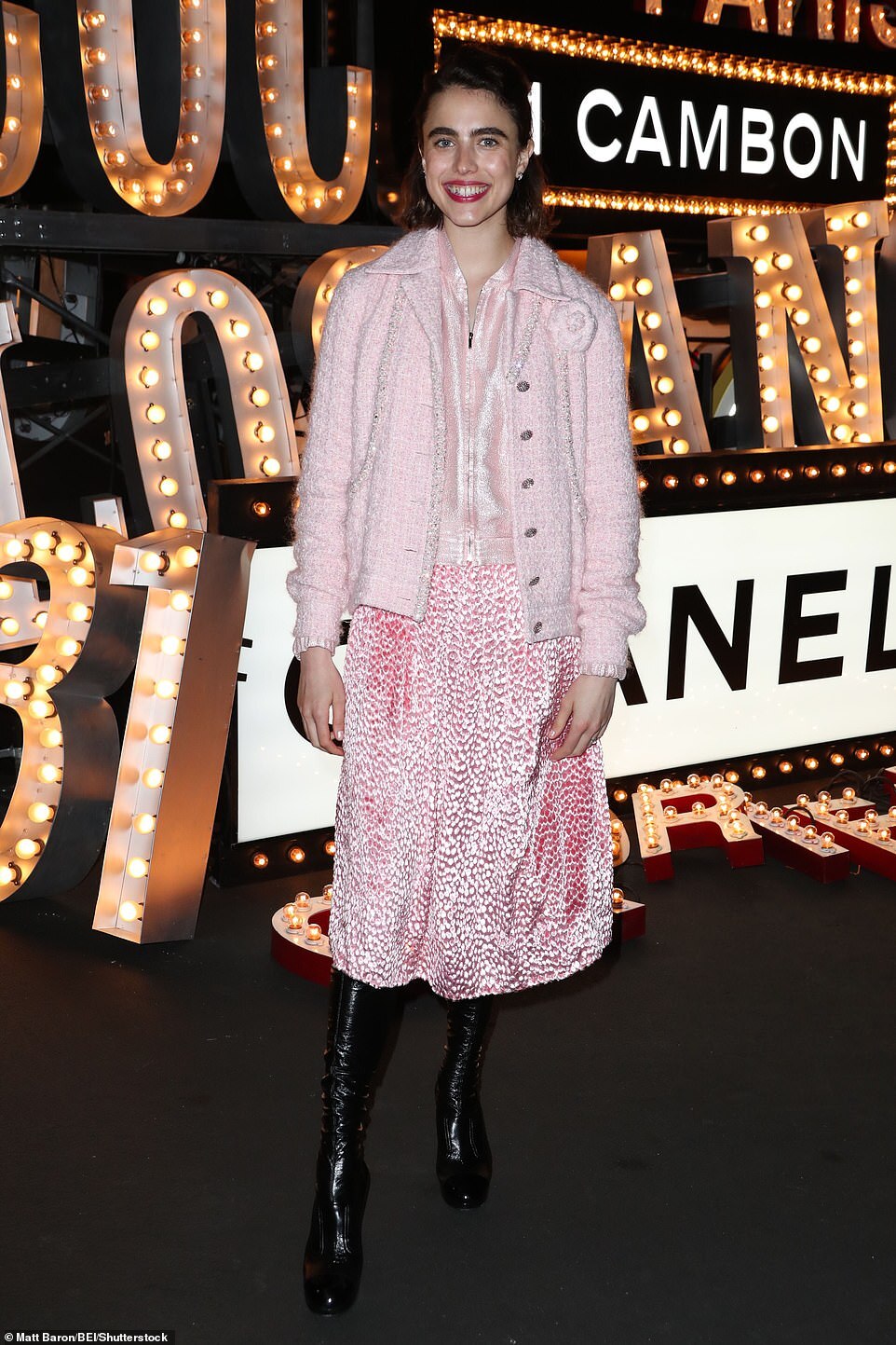 화요일 로스엔젤레스에서 열린 샤넬 2023/24 크루즈 쇼는 레드카펫 위에서 눈부신 수많은 스타들과 함께 성대한 행사였다. 바비인형 배우 마고 로비(32세)가 블랙 비키니 탑과 청바지를 입고 레드카펫 위에서 빨래판 복근을 뽐내며 살결을 살짝 보였다. 24세의 신혼부부인 소피아 리치(Sofia Richie)는 옅은 분홍색 깃털 트리밍과 레이스 트리밍 반바지가 특징인 흰색 샤넬 블레이저를 입고 빛났다. 한편 25세의 엘 패닝은 상단에만 단추가 달린 은색과 검정 조끼를 입고 탄탄한 횡격막을 엿볼 수 있었다. 말레피센트 스타는 블랙 스팽글 팬츠와 부츠를 매치해 룩을 연출했다. 샤넬 버지니 바이어드의 제작 최고책임자는 파라마운트 부지에서 많은 스타들이 참가한 크루즈 컬렉션을 선보였다. The Chanel Cruise 2023/24 show in Los Angeles on Tuesday was a magnificent affair, with a number of stars dazzling on the red carpet. Barbie actress Margot Robbie, 32, flashed the flesh in a black bikini top and blue jeans, as she showed off her washboard abs on the red carpet. Newlywed Sofia Richie, 24, glowed in a white Chanel blazer, featuring a pale pink feather trim, and lace-trim shorts. Meanwhile Elle Fanning, 25, showed a glimpse of her toned midriff in a silver and black vest, which was only buttoned on top. The Maleficent star paired the look with black sequin pants and boots. Creative director of Chanel Virginie Viard presented the star-studded cruise collection on the Paramount lot. 1. Blonde bombshell: She wore her blonde tresses cascading down her shoulders in lights curls. 블론드 범쉘(금발의 매력녀): 그녀는 가벼운 컬로 어깨 아래로 떨어지는 금발 머릿단을 했다. 2. Natural beauty: Margot flashed her megawatt Hollywood smile for the shutterbugs. 자연미: 마고는 셔터버그를 위해 그녀의 메가와트 할리우드 미소를 살짝 지었다. 3. Stunning: All eyes were on Margot as she posed for snaps at the runway show. 놀라운: 그녀가 런웨이 쇼에서 스냅 사진을 찍기 위해 포즈를 취하면서 모든 시선이 마고에게 쏠렸다. 4. Looking good: Margot and Rose Byme were all smiles at the star-studded event. 잘생김: 마고와 로즈 바임은 스타들이 총출동하는 행사에서 모두 미소를 지었다. 5. Fun times: The pair larked around together ahead of watching the catwalk presentation. 즐거운 시간: 두 사람은 캣워크 프레젠테이션을 보기 전에 함께 놀았다. 6. Newlyweds! Lionel Richie's daughter was accompanied by her new husband, music executive Elliot Grainge, 29, who looked handsome as ever in a dark suit over a cream sweater. 신혼부부! 라이오넬 리치의 딸은 그녀의 새 남편이자 29세의 음악 경영자 엘리엇 그레인지와 동행했다. 7. Original look: Elle, 25, showed a glimpse of her toned midriff in a silver and black vest, which was only buttoned on top. 오리지널 룩: 25세의 엘은 상단에만 단추가 달린 은색과 검정 조끼를 입고 탄력 있는 횡격막을 살짝 보여주었다. 8. Unique vibe: The actress wore her brunette tresses in slick curls. 독특한 분위기: 여배우는 매끈한 컬에 갈색 머리 머릿단을 했다. 9. Grunge: The Twilight star added a touch of grunge to the outfit with a chunky silver Chanel chain necklace. 그런지(얼터너티브 록): 트윌라이트(황혼) 스타는 통통한 은색 샤넬 체인 목걸이로 의상에 약간의 그루지를 더했다. 10. Peace! At one point Kristen flashed a friendly peace sign. 평화! 어느 순간 크리스틴은 우호적인 평화의 표시를 했다. 11. That's hot: Paris Hilton, 42, put her toned legs on display in a mini pink pastel dress, which she layered with strands of white pearls. 멋져요: 42세의 패리스 힐튼은 흰색 진주 가닥으로 레이어드한 미니 핑크 파스텔 드레스를 입고 탄력 있는 다리를 과시했다. 12. Sitting pretty: Riley looked sensational as she settled in on the FROW to watch the programme. 예쁘게 앉기: 라일리가 프로그램을 보기 위해 FROW에 자리를 잡았을 때 깜짝 놀랐다. 13. Busty: Leonardo DiCaprio's exgirlfriend Camila Morrone, 25, put on a busty display in a plunging black mini dress and heels. 버스티: 레오나르도 디카프리오의 전 여자친구인 카밀라 모론(25세)은 깊게 파인 블랙 미니 드레스와 힐을 신고 풍만한 디스플레이를 선보였다. 14. Magnetic: She drew attention to her magnetic eyes with smokey eyeshadow. 매력있는: 스모키 아이섀도우로 매력있는 눈매로 눈길을 끌었다. 15. Think pink: The beauty accentuated her visage with a touch of blush, pink and black eyeliner, and red lipstick. 씽크 핑크: 미녀는 블러셔, 핑크와 블랙 아이라이너, 레드 립스틱으로 얼굴을 강조했다. 16. Cute: Halsey, 28, had all eyes on her in a plunging chic cardigan with a pastel pink trim and white stripes. 귀여움: 28세의 할시는 파스텔 핑크 트리밍과 흰색 줄무늬가 있는 깊게 파인 시크한 카디건을 입고 그녀를 주목했다. 17. Pink vision: Margaret Qualley, 28, was a vision in a pale pink jacket and a matching pink skirt. She rounded out the stylish look with black boots. 분홍색 비전: 28세의 마가렛 퀄리는 옅은 분홍색 재킷과 어울리는 분홍색 치마를 입은 환상이었다. 그녀는 블랙 부츠로 스타일리시한 룩을 완성했다. 18. All black: The former Real Housewives of Beverly Hills star Lisa Rinna, 59, rocked an all-black sequin ensemble. 올 블랙: 베벌리 힐스의 전 진짜 주부들(Real Housewives) 스타 리사 리나(59세)는 올 블랙 스팽글 앙상블을 선보였다. 19. Cool look: The reality TV star paired the outfit with a chunky Chanel lock chain and gold belt. 멋진 모습: 리얼