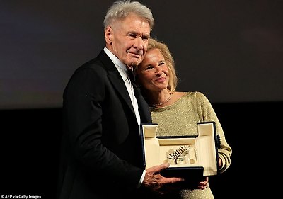 5. Stellar! After arriving at the theatre, Harrison was presented with his Palme d'or by French director of the Cannes Film Festival, Iris Knobloch. 주요한(스타)! 극장에 도착한 해리슨은 프랑스 칸 영화제 감독인 아이리스 크노블로흐로부터 황금종려상을 수상했다.