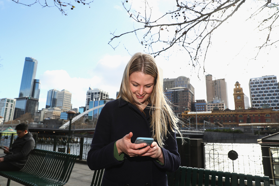 7. Kate plays the Pokémon Go game on her phone at Southgate, July 13, 2016, in Melbourne, Australia. # 케이트가 호주, 멜버른의 사우스게이트에서 2016년 7월 13일에 그의 휴대폰으로 포켓몬 고 게임을 한다.