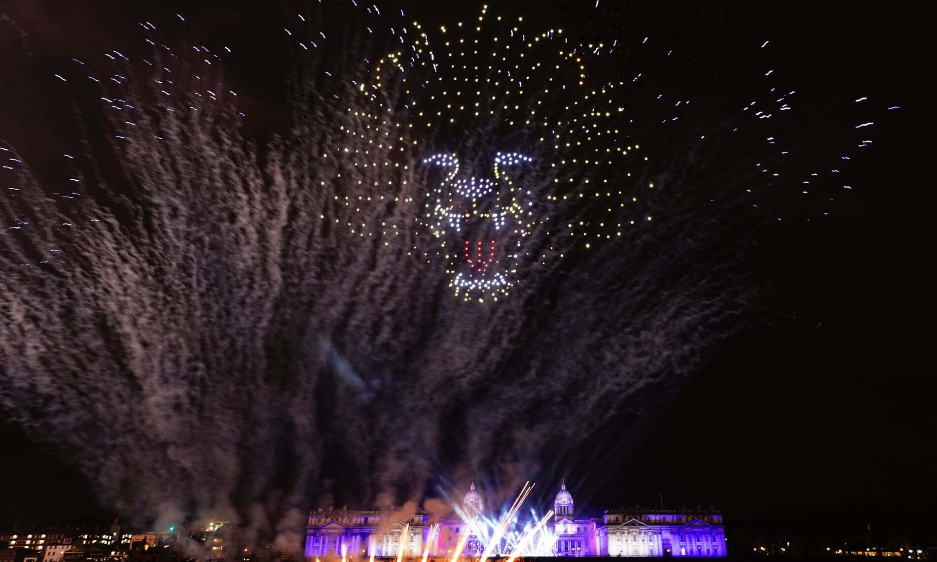 ▲ Drones and fireworks illuminate the night sky over the Old Royal Naval College in London after the capital's normal New Year's Eve fireworks display was cancelled due to the coronavirus pandemic. # Photograph: Aaron Chown/PA 코로나19 팬데믹 때문에 런던의 정식 새해 전야 불꽃놀이가 취소된 후 드론과 불꽃놀이가 런던 구 왕립 해군대학의 밤하늘을 밝히고 있다. 새해 전야는 코비드로 인해 일부 행사가 제한됨에도 불구하고 전 세계적으로 축하된다 New Year’s Eve is celebrated across the globe despite Covid restricting some events Pejman Faratin and Joe Plimmer Fri 31 Dec 2021 17.28 GMT