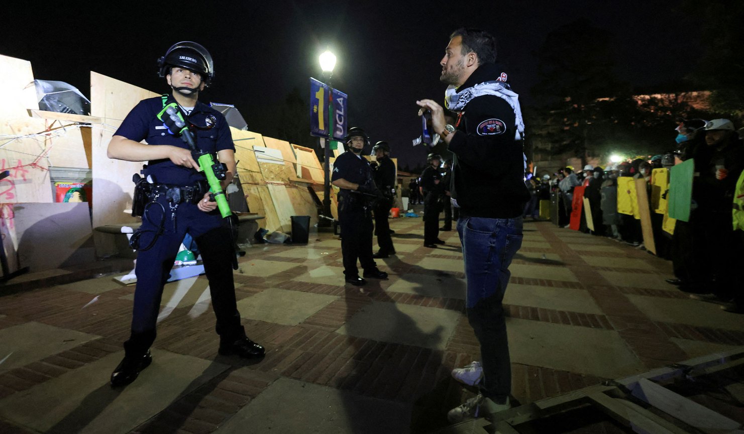 금주 로이터통신 전 세계 톱 보도사진 (May 5) Top Photos of the Week May 5, 2024 4:00 AM By National Review 금주 로이터통신 사진기자들이 포착한 전 세계에서 가장 흥미롭고 특이하며 매혹적인 사진 중 일부를 선정했다. A selection of some of the most interesting, unusual, and captivating images from around the world captured this week by Reuters photographers. 🗞️📙내셔널 리뷰(National Review)는 미국의 보수 우파 자유주의 사설 잡지로, 정치, 사회, 문화 문제에 대한 뉴스와 논평에 중점을 두고 있다. 이 잡지는 1955년 작가 윌리엄 F 버클리 주니어(William F. Buckley Jr.)에 의해 창간되었다. 편집장은 리치 라우리(Rich Lowry)이고 편집자는 라메쉬 폰누루(Ramesh Ponnuru)이다. 창간 이후 이 잡지는 미국 보수주의의 발전에 중요한 역할을 담당해 왔으며, 경계를 정의하고 융합주의를 장려하는 동시에 미국 우익의 선도적인 목소리로 자리매김했다. 1. Cast member Ryan Gosling and Mikey Day, dressed as Beavis and Butt-Head from a Saturday Night Live skit, attend a premiere for The Fall Guy in Los Angeles, Calif., April 30, 2024. # Mario Anzuoni/Reuters 토요일 밤 라이브 촌극에서 비비스와 버트헤드로 분장한 출연진 라이언 고슬링과 마이키 데이가 2024년 4월 30일 캘리포니아주 로스앤젤레스에서 열린 폴 게이(가을 남자) 시사회에 참석한다. 2. A pro-Palestinian protester stands in front of a law enforcement officer during a pro-Palestinian protest at an encampment in the University of California Los Angeles in Los Angeles, Calif., May 2, 2024. # David Swanson/Reuters 2024년 5월 2일 캘리포니아주 로스앤젤레스 캘리포니아 대학교 로스앤젤레스 캠프에서 친팔레스타인 시위가 진행되는 동안 친팔레스타인 시위자가 경찰 앞에 서있다. 3. Law enforcement officers detain a protester at the University of California Los Angeles during a pro-Palestinian protest in Los Angeles, Calif., May 2, 2024. # Mike Blake/Reuters 2024년 5월 2일 캘리포니아주 로스앤젤레스에서 열린 친팔레스타인 시위 도중 경찰이 캘리포니아대학교 로스앤젤레스 캠퍼스에서 시위자를 체포하고 있다. 4. Thermal power plant employees at a building damaged by recent Russian missile strikes at an undisclosed location in western Ukraine, May 2, 2024. # Roman Baluk/Reuters 2024년 5월 2일 우크라이나 서부 미공개 장소에서 최근 러시아 미사일 공격으로 피해를 입은 건물의 화력발전소 직원들. 5. Ukrainian servicemen of the 148th Separate Artillery Brigade of the Ukrainian Air Assault Forces fire a M777 howitzer toward Russian troops near a front line in Donetsk Region, Ukraine, May 1, 2024. # Valentyn Ogirenko/Reuters 우크라이나 항공 돌격군 제148 독립포병여단의 우크라이나 군인들이 2024년 5월 1일 우크라이나 도네츠크주의 최전선 근처에서 러시아군을 향해 M777 곡사포를 발사한다. 6. An Israeli soldier stands by military vehicles near Israel's border with Gaza amid the ongoing conflict in Gaza between Israel and the Palestinian Islamist group Hamas, in southern Israel, May 1, 2024. # Ronen Zvulun/Reuters 2024년 5월 1일 이스라엘 남부에서 이스라엘과 팔레스타인 이슬람 무장정파 하마스 사이의 가자지구 분쟁이 진행 중인 가운데 이스라엘 군인이 가자지구와 이스라엘 국경 근처 군용 차량 옆에 서있다. 7. A demonstrator douses a riot police vehicle in paint during clashes with police at a May Day rally in Santiago, Chile, May 1, 2024. # Ivan Alvarado/Reuters 2024년 5월 1일 칠레 산티아고에서 열린 노동절 집회에서 시위대가 경찰과 충돌하는 동안 기동 경찰차에 페인트를 뿌린다. 8. Police officers block Filipino activists from marching towards the U.S. Embassy during a Labor Day protest in Manila, Philippines, May 1, 2024. # Lisa Marie David/Reuters 2024년 5월 1일 필리핀 마닐라에서 열린 노동절 시위 동안 경찰이 필리핀 활동가들이 미국 대사관을 향해 행진하는 것을 막고 있다. 9. People board a KRI Kakap-881 warship in the port of Tagulandang to be evacuated to North Minahasa Regency on Sulawesi following the eruptions of Mount Ruang volcano in Sitaro, North Sulawesi Province, Indonesia, May 1, 2024. # Antara Foto/Andri Saputra/via Reuters 2024년 5월 1일 인도네시아 북술라웨시주 시타로에서 루앙산 화산이 폭발한 후 사람들이 술라웨시의 북미나하사 지구로 대피하기 위해 타구란당 항구에서 KRI 카캅-881 군함에 승선하고 있다. 10. Worshippers attend the Day of the Spiritual Indoctrinator, annual celebrations at the Vale do Amanhecer (Valley of the Dawn) community in the Planaltina neighborhood of Brasilia, Brazil, May 1, 2024. # Adriano Machado/Reuters 2024년 5월 1일 브라질 브라질리아 플라날티나 지구에 있는 발레 두 아만헤세르(새벽의 계곡) 공동체에서 열리는 연례 행사인 영적 교육자의 날에 예배자들이 참석한다. 11. People erect a 40-meter high maypole, a long-standing tradition of the German countryside celebrating the beginning of spring, with the help of wooden poles in Glentleiten, Germany, May 1, 2024. # Angelika Warmuth/Reuters 2024년 5월 1일 독일 글렌틀라이튼에서 사람들이 나무 기둥의 도움을 받아 봄의 시작을 축하하는 독일 시골의 오랜 전통인 높이 40m의 메이폴을 세우고 있다. 12. A monument to Ayrton Senna with tributes on the 30th Anniversary of his death at the Autodromo Enzo e Dino Ferrari in Imola, Italy, May 1, 2024. # Jennifer Lorenzini/Reuters 2024년 5월 1일 이탈리아 이몰라의 오토드로모 엔조에 디노 페라리에서 사망한 지 30주년이 되는 날 추모