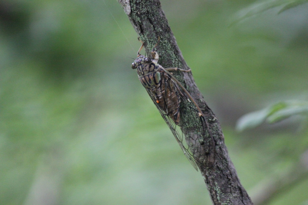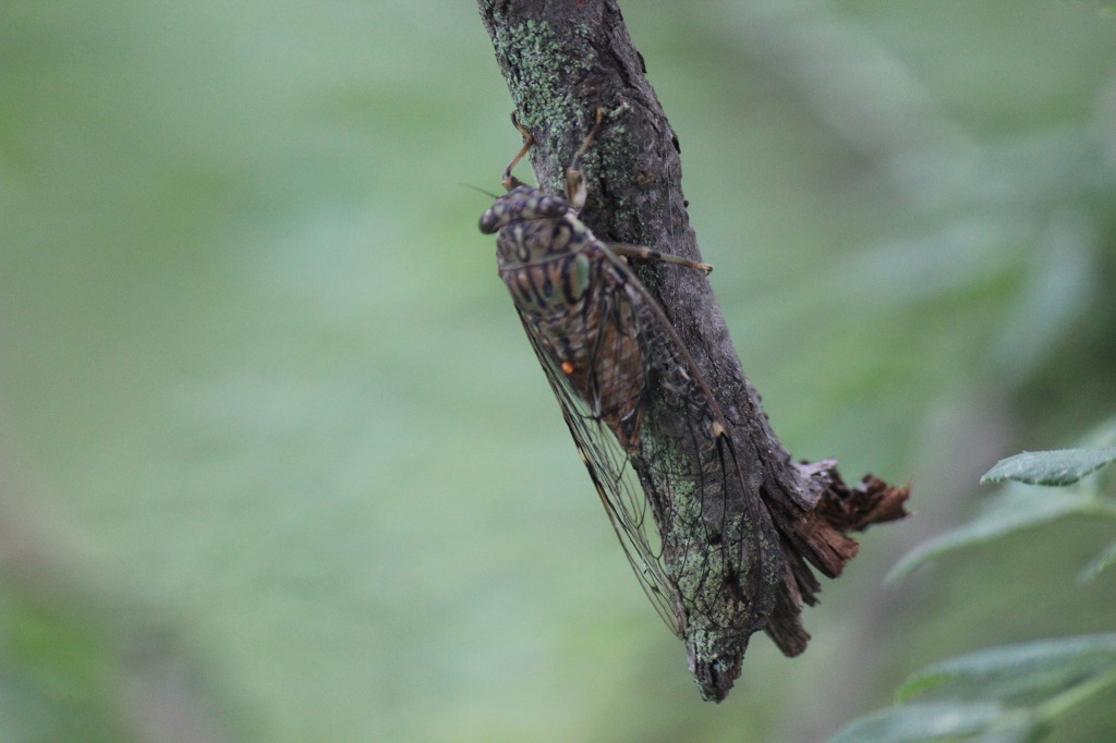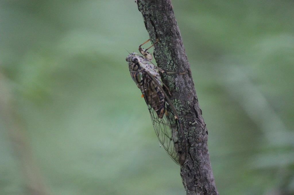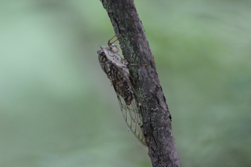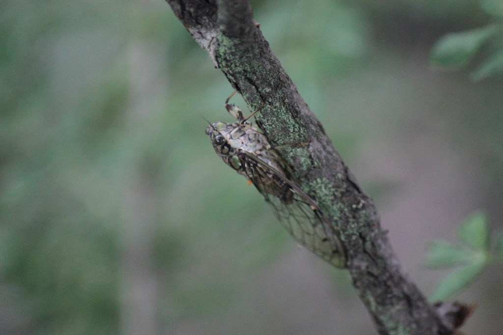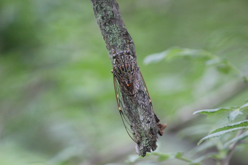 애매미를 발견했다. 애매미는 가느다란 나뭇가지와 굵기가 비슷해 얼핏 보아서는 구분이