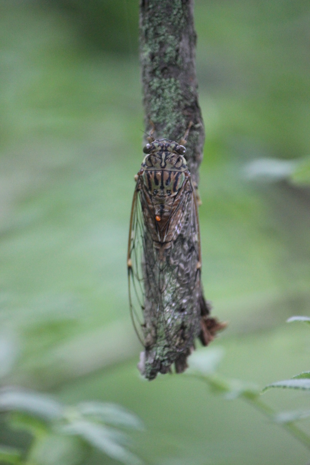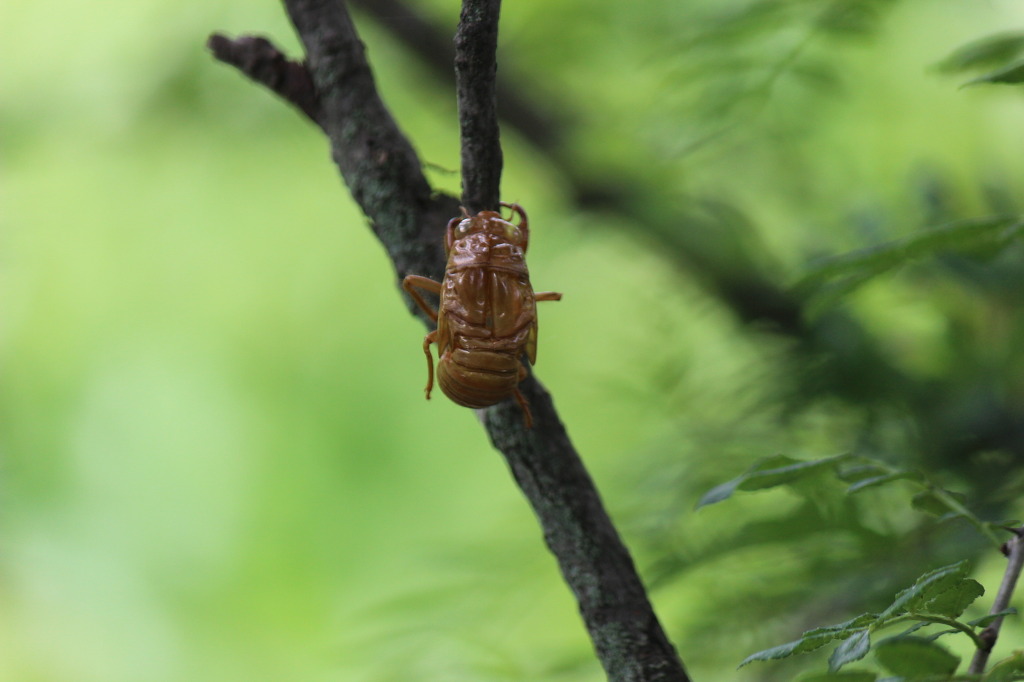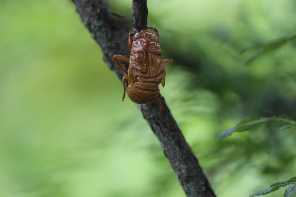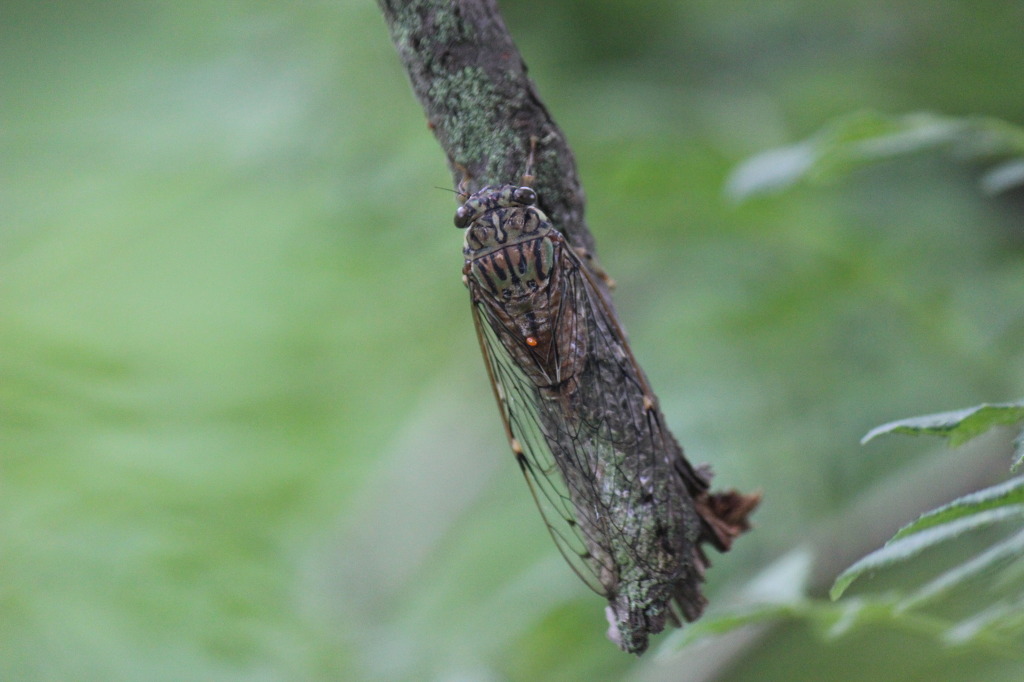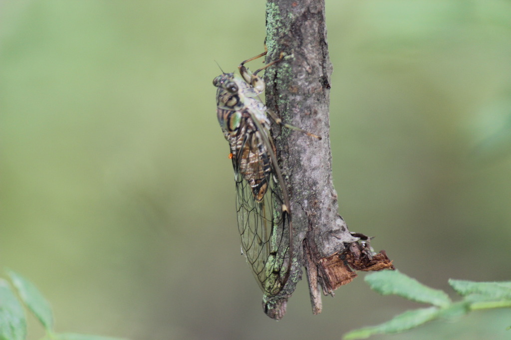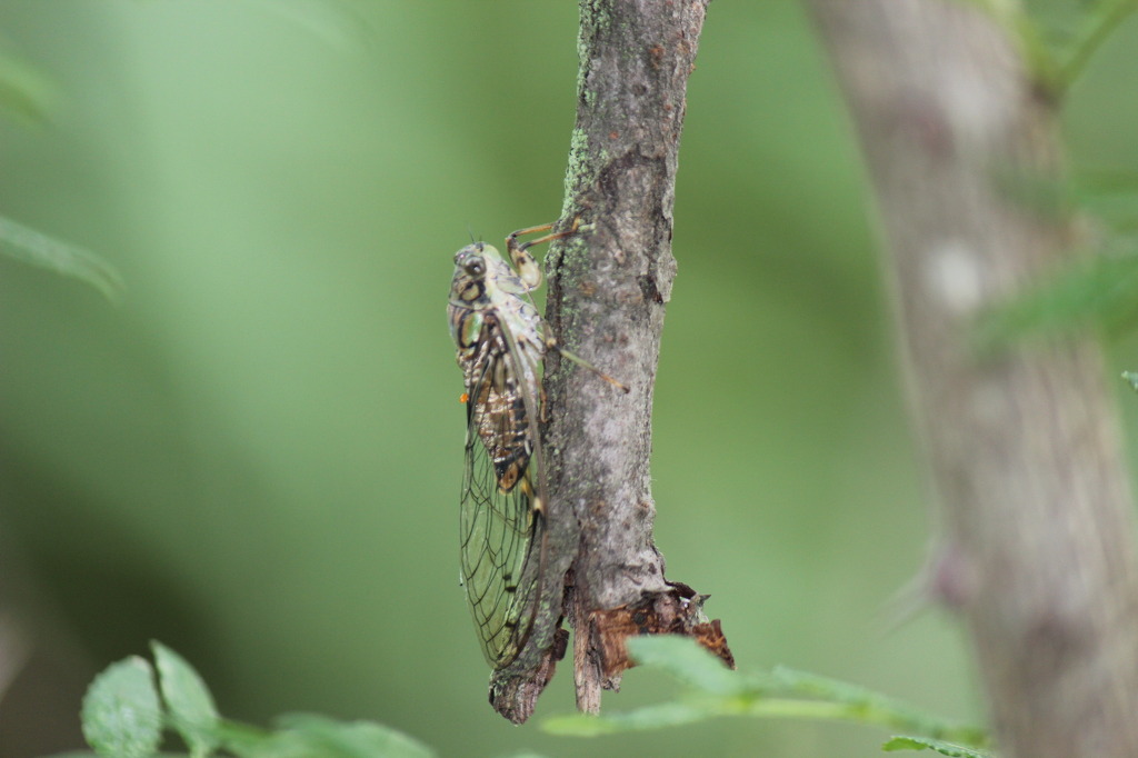 애매미를 발견했다. 애매미는 가느다란 나뭇가지와 굵기가 비슷해 얼핏 보아서는 구분이