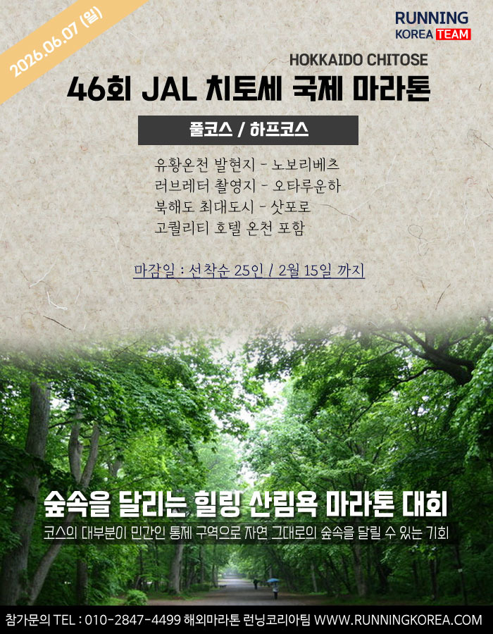 ★ 2026년 JAL 치토세국제마라톤 모객시작 4일 일정