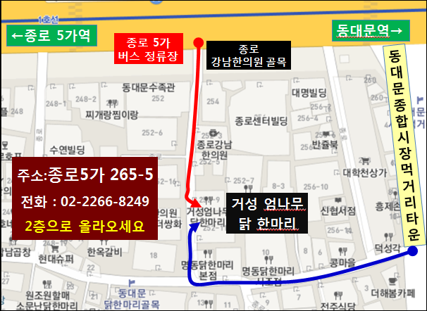 종로5가역 ⑤번 출구로 나오시어 동대문방향으로...