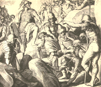 사진 설명 : 남방 왕의 목을 밟다. (여호수아 10:21-28)