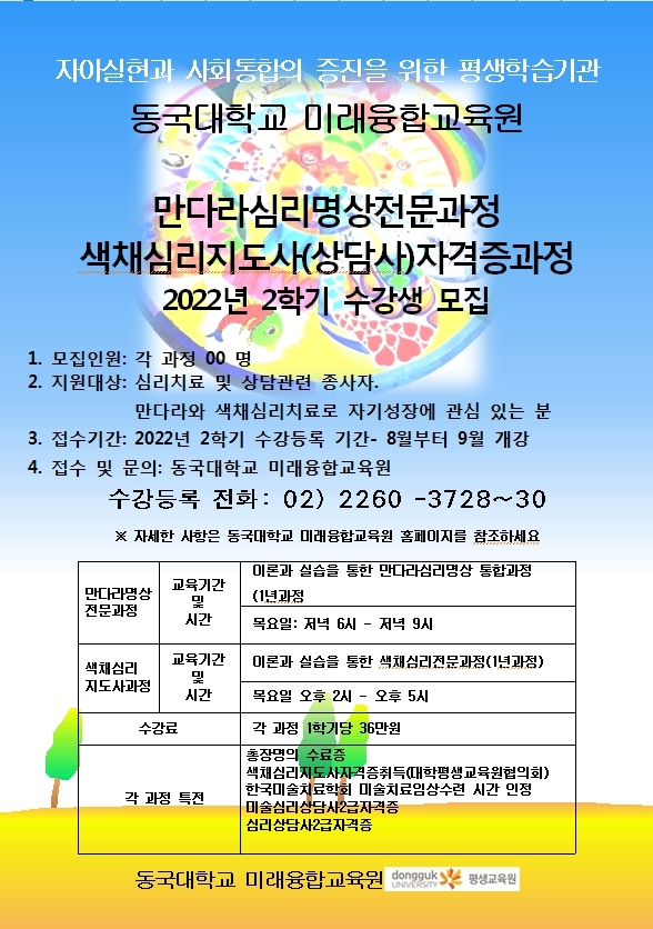 만다라명상/색채심리상담사 전문과정 작성자지니|작성시간22.09.28|조회수43 목록 댓글 0 글자크기 작게가 글자크기 크게가 만다라명상/색채심리상담사 전문과정 만다라명상/색채심리상담사 자격증 과정 문양만다라- 다양한 컬러를 사용하여 마음의 색을 표현해 보세요. 다음검색 현재 게시글 추가 기능 열기 북마크 공유하기 신고 센터로 신고 댓글 댓글 0 댓글쓰기 답글쓰기 댓글 리스트