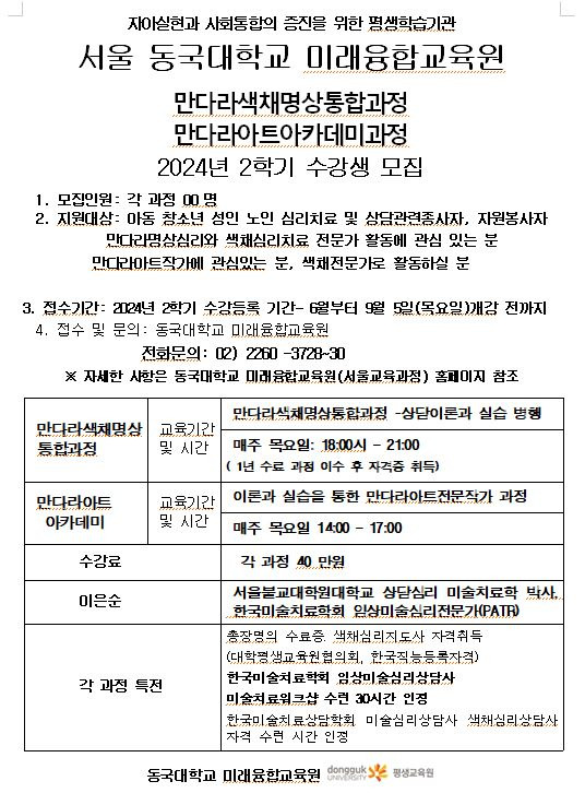 ※ 자세한 사항은 동국대학교 미래융합교육원(서울교육과정) 홈페이지 참조
