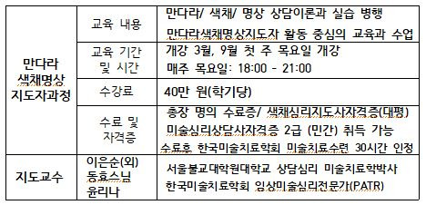 만다라명상심리와 색채 심리치료 전문가 활동에 관심 있는 분