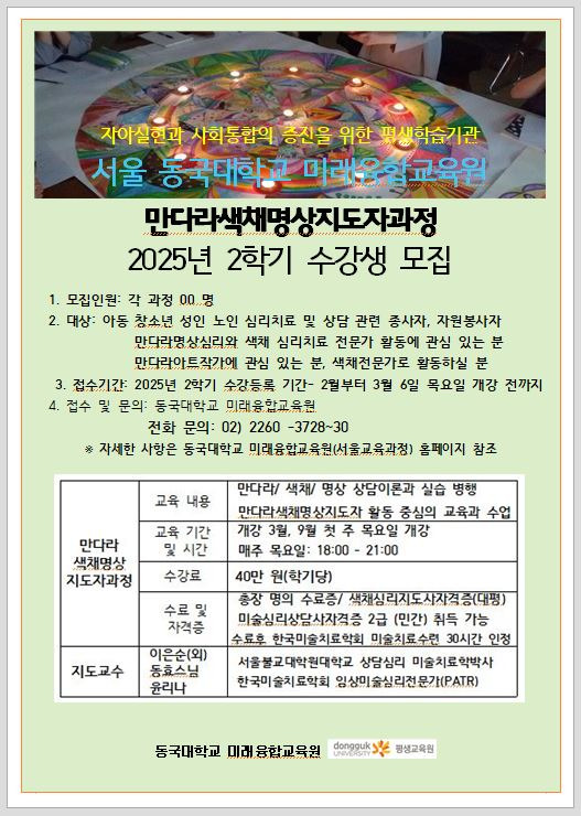※ 자세한 사항은 동국대학교 미래융합교육원(서울교육과정) 홈페이지 참조