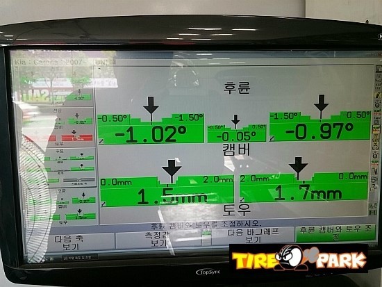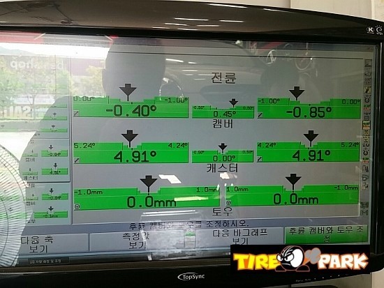 후륜 캠버.토우 모두 정상수치로 완벽하게 조정이 된 모습입니다^^