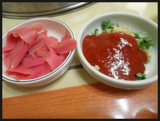아래 사진이 초장인데, 초장+콩 고물+ 제피잎(일반적으로 산초라고들 하지요...)