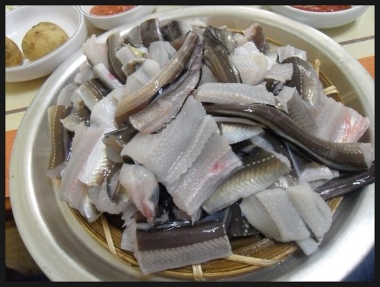 장어가 상당히 신선 합니다. 막 꼬물 거립니다. 아직 신경이 살아 있어서. 혐오 스러운가요??