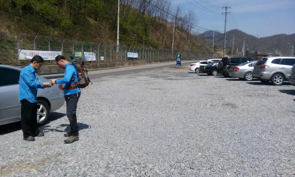 팔괴리 주차장( 총대장님 산행 코스 점검중): 여기서부터 임도 500m 가면 오그란이