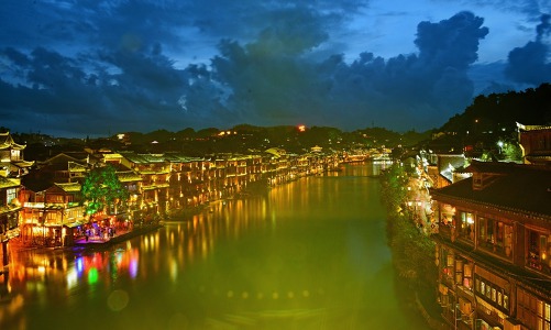 ▶봉황고성 옛마을 구경 ▶봉황고성 타강(沱江) 야경 뱃놀이 ▶봉황고성 관광 중국 3대 고성 중 가장 아름다운 봉황고성은 묘족이 강변을 이용해서 조각루를 만들고 마을 한가운데로 맑은 퉈 강(沱江)이 유유히 흐르고, 강변을 따라 학처럼 기다란 다리를 곧추세운 조각루가 이어진다. 이른 아침 물안개가 강변을 휘감을 때와 석양이 물드는 해 질 녘이 가장 아름답다. 고성 전체를 조명으로 환하게 밝힌 야경은 보너스다. |