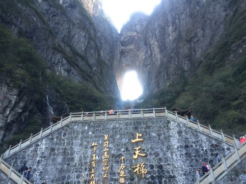 봉황고성→장가계[이동 3.5시간] 【오후】 ▶천문산 관광 (上行 - K블카 이용) .(下行 - 전용버스 이용) 천문산 트래킹(천문동.천문산.절벽장랑)
