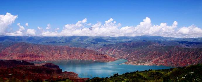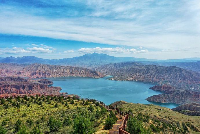칸브라 국가지질공원(坎布拉国家地质公园) 황허상류를 댐으로 막아서 생성된 인공호수 주변의 수려한 협곡과 산악지형으로 우리가 알고 있던 누런 탁류의 황허가 아닌 푸른 물빛의 황허를 만날 수 있는 관광지로 현재까지도 한국인들에게는 별로 알려지지 않은 곳으로 3800만년 전에 형성된 지형으로 해발 3000m에서 유람선을 이용하며 도보여행으로 아주 좋은 코스이다.