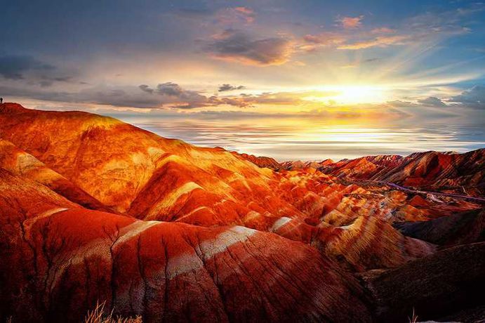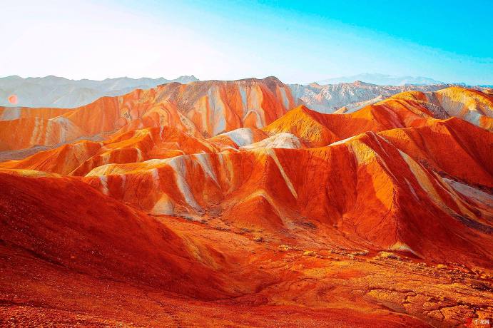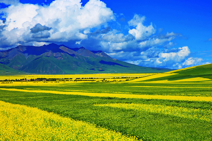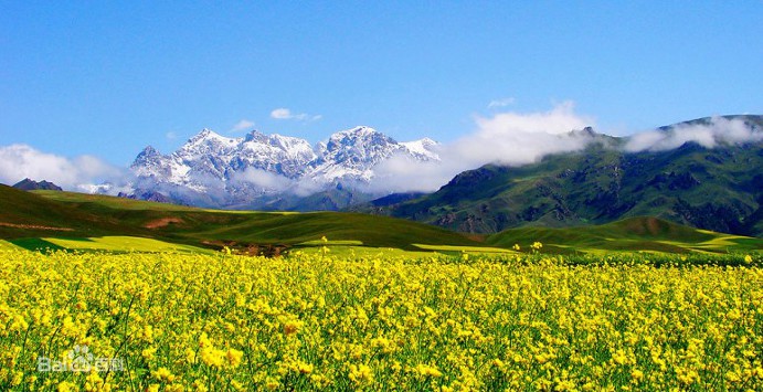 【칠채산】 감숙성 하서주랑 중부에 위치하는 오랜 역사의 장액에는 무지개가 땅으로 내려온 듯 황토산에 색색의 물감을 채색한 듯 인간의 상상력을 초월하는 비현실적인 풍경이 있다. 대지의 색채예술로 불리우는 중국 간쑤성의 장액시의 칠채산(七彩山)이 바로 그 주인공이다. 칠채산의 공식 이름은 장액단하국가지질공원으로 단하는 붉은 노을을 뜻한다. 【100리 유채화 경치구】 227국도는 청해성 서녕시에서 시작하고 終點(종점)은 감숙성 장액시에서 끝나는데 중국의 28조의 南北(남북) 縱線(종선)중의 하나로서 국가의 간선도로이다 기련산맥의 100여공리를 지나고 기련산의 남북통로로 심록색의 청과와 황금색 유채화가 난만하게 핀 곳이다