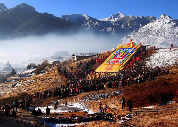 【라부랑 사원】 라싸를 제외하고는 가장 으뜸가는 티베트 불교사원인 라브랑 사원이 있는 곳이다. 겔룩파 학파의 6대 사원 중 하나인 라브랑 사원은 1200명의 승려들이 머물고 있는 곳으로 밀교, 신학, 의학, 천문학 등 6개의 연구소가 있는 곳이다. 【뉘얼가이 초원】 감숙성과 사천성의 경계 지역에 있는 대초원으로 봄이 가장 늦게 찾아오는 지역으로 초록색으로 변한 초원위에 야생화가 끊없이 펼쳐진다. 동티벳을 여행하는 여행객들이 즐겨 찾는 초원이다.