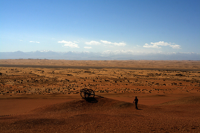 【양관 유적지】 돈황을 기점으로 실크로드는 두 개의 길로 나누어지는데 천산북로로 가는 관문이 옥문관(玉門關)이며 천산남로로 가는 관문이 바로 양관(陽關)이다. 지금은 거의 폐허가 되어있지만 역시 실크로드의 관문을 경유하지 않고 여행을 할 수 없다고 한다. 양관으로 가기 위해 통과해야 하는 타클라마칸 사막은 평생보기 힘든 독특한 경험의 길인 것이다.