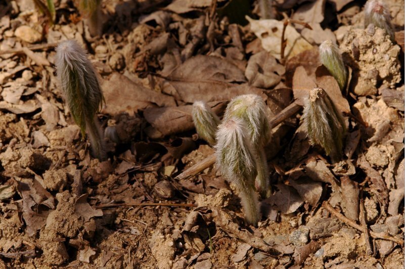 우산나물의 새순 - 털로 덮여 있다