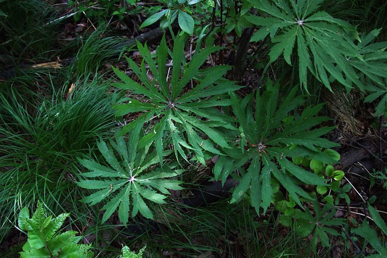 잎이 펼쳐진 우산나물
