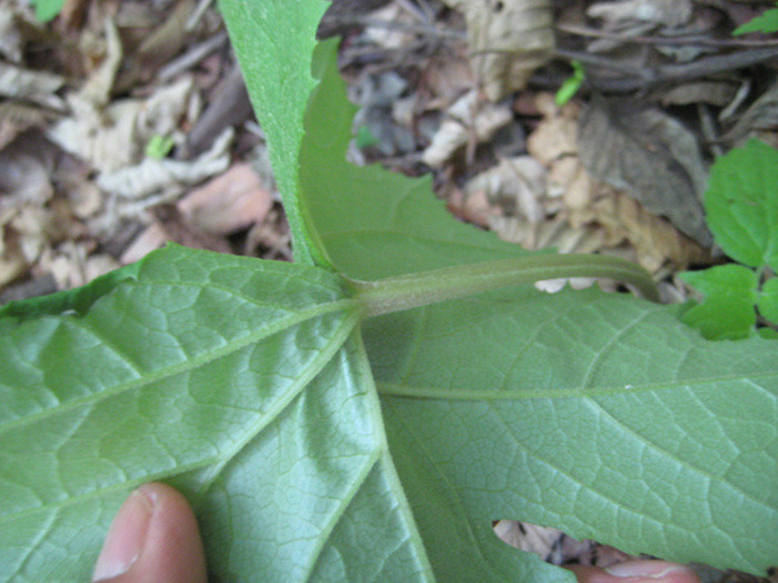 ↑ 병풍취의 줄기는 각이 나있다. 줄기 단면은 사각형에 가깝다.