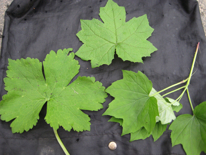 진범을 병풍취로 오인하기 쉬운데 잎장의 끝부분을 자세히 보면 진범은 끝이 약간 뭉툭하고 병풍취는 뾰족하다.