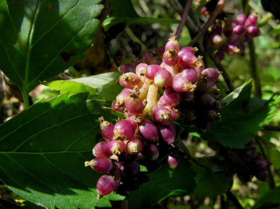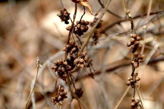 새삼의 줄기와 꽃차례- 줄기에 붉은색이 감돈다.
