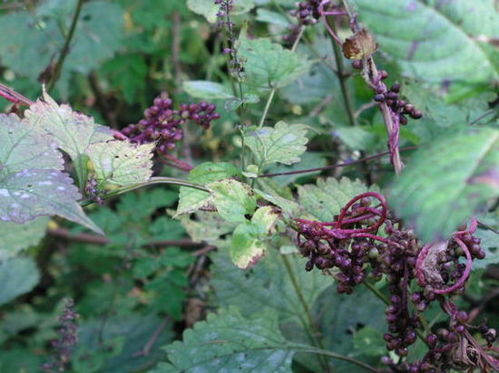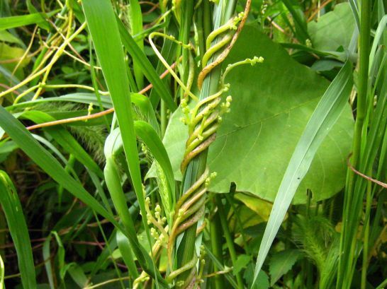 칡덩굴에 기생하는 새삼덩굴은 칡도 고사 시킬정도로 번식해 나간다.
