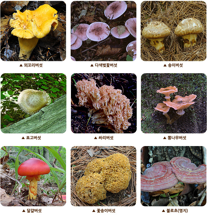 <영지버섯-약용> <참나무버섯-식용>
