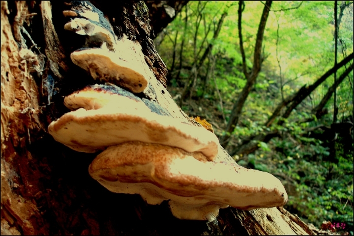 주로 침엽수의 생 고목이나 넘어진 나무에서 많이 보이는 항암효과가 높은 버섯입니다.