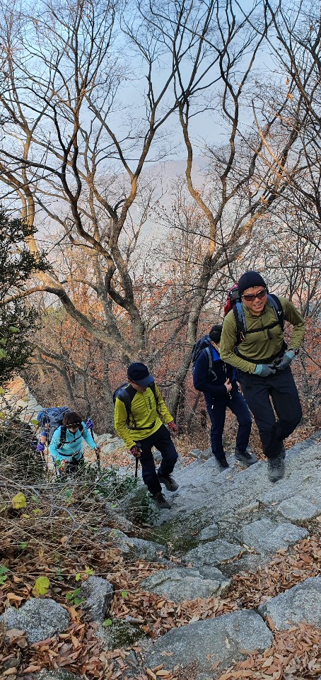 대한민국 진짜사나이(아나로그님,백목련님,멋진동현님) 향기를 담은(도미라님,시나브로님) 쌀짝 반겨주는 미소에 상큼하였고 일단 이동하면서 1)뒤딤발 2)호흡 3)자세를 슬쩍 살피고 원효봉 입구까지 삼거리까지 가나니 참석한 대원 9명