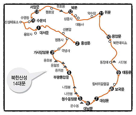 북한산 북한산성 14성문 환종주 16.8km(8시간)