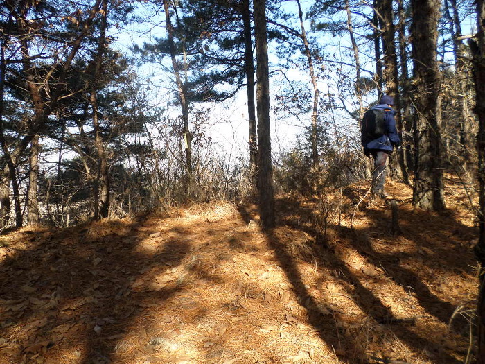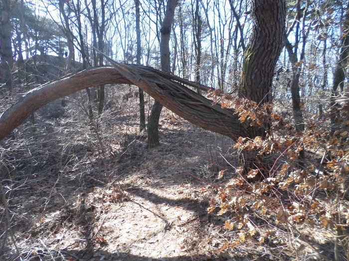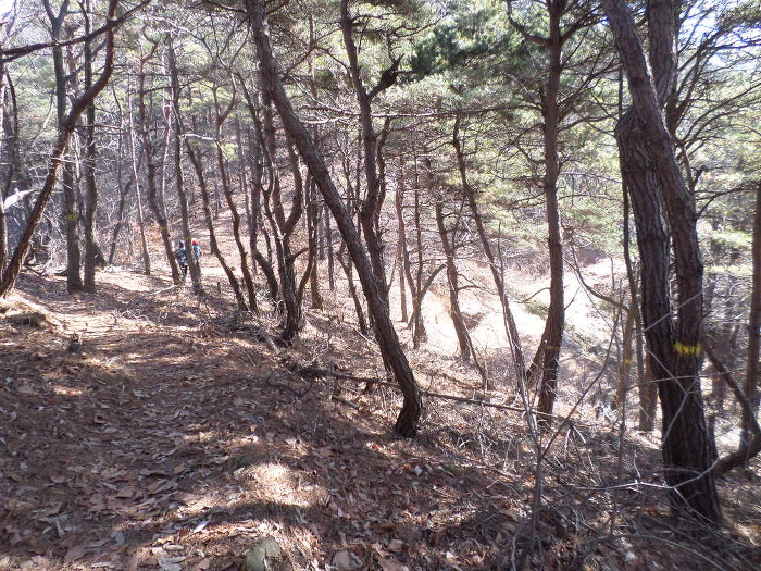 국수봉에서 오갑산가는 길목에는 거송들이 저마다 허리를 꼬고앉아 눈을 즐겁게 해준다!~