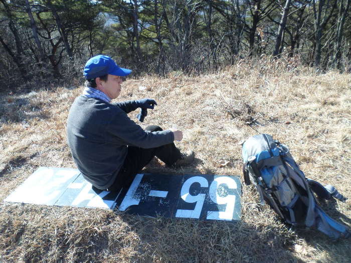 헬기장 번호가 적힌 오석을 판삼아 대여섯명이 전을 펴고 25분여 동안 휴식겸 속을 채우고!~