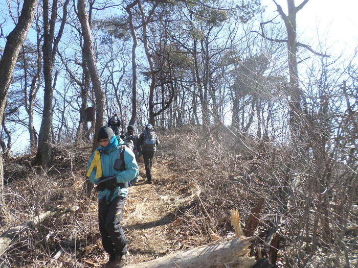 다시 안부로 내려섰다 올라서는데 초장부터 선두에 서가 둇나게 달라빼던 수희씨가 어물쩡 거리길레